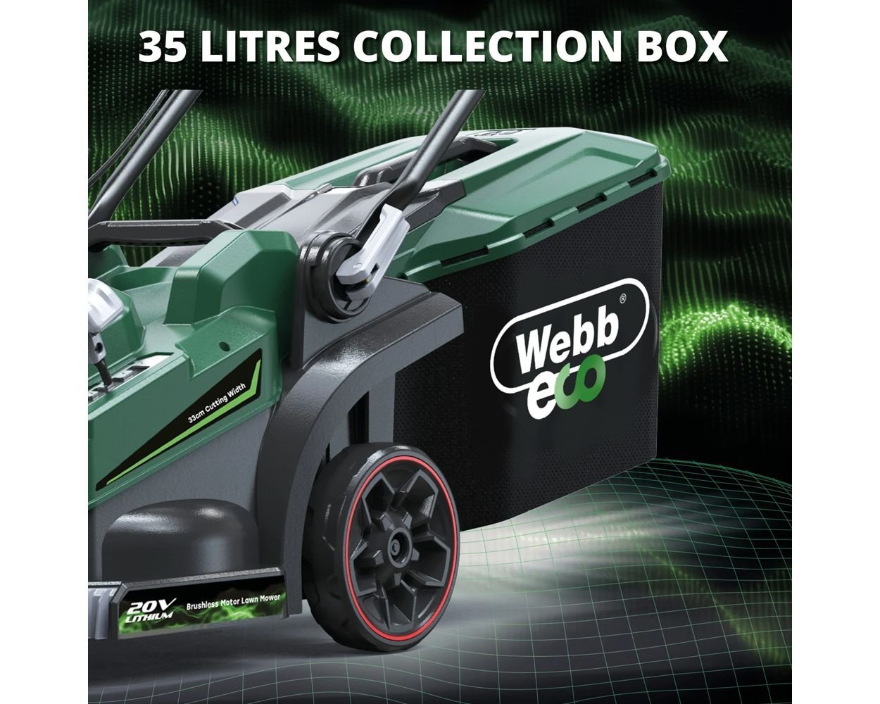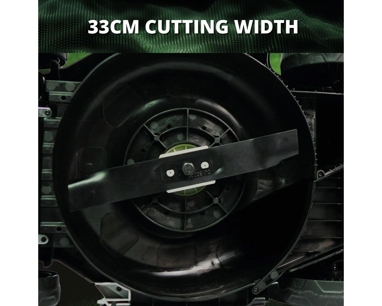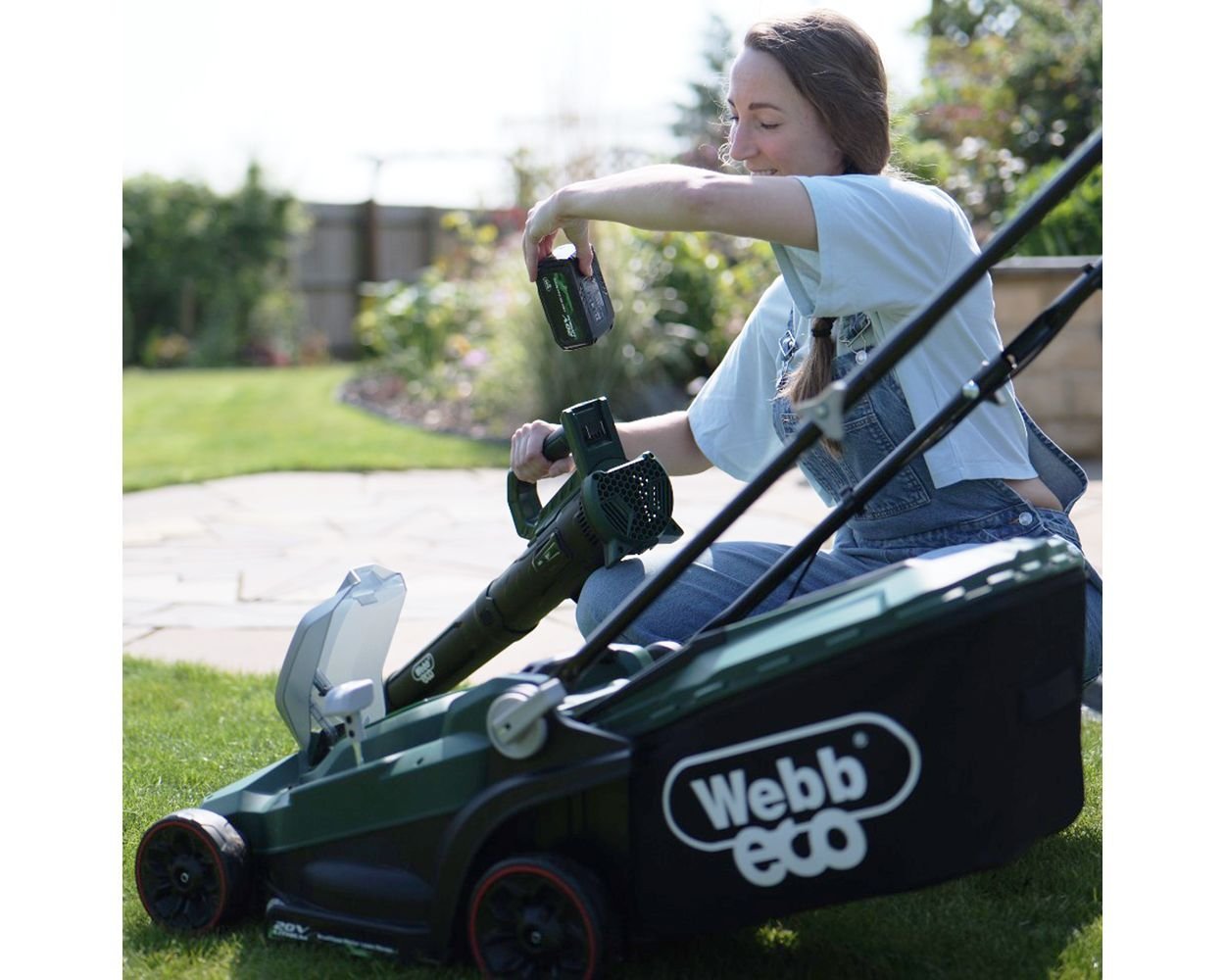 Weighing just 12.7kg, this lightweight lawn mower provides ease of manoeuvrability. The single lever height adjustment facilitates quick and effortless alterations in grass lengths, whilst integrated fins enable up-to-the-edge mowing. The Webb Eco WEV20LM33BARE also features a foldable handlebar and vertical storage position.