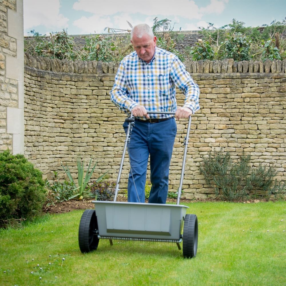The Handy THDS drop spreader has a 27kg (60lb) capacity poly hopper and a 56cm (22″) working width. It features variable settings for the quick and accurate application of lawn care granules, lawn sand and grass seed. This push spreader is a great choice for even results, especially when spreading weed or moss control treatments.